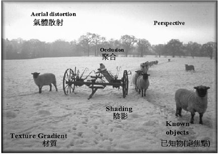 | 光影 | 物體的影子和光的照射角度與強(qiáng)度也會(huì)影想深度 |